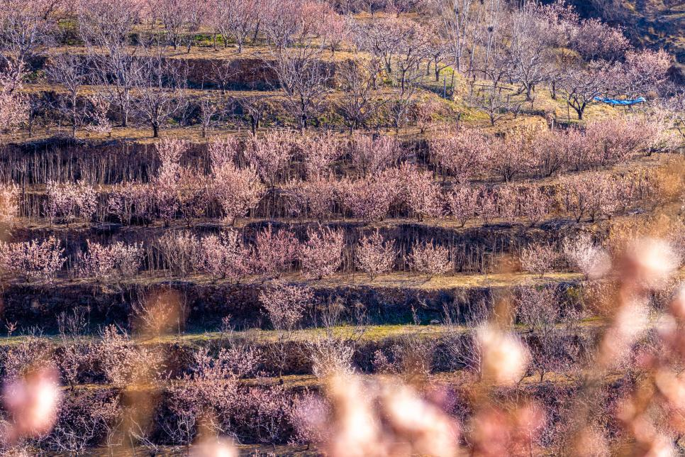 在五莲县上沟村,层层叠叠的梯田之间,樱桃花如同云朵般铺展开来。武爱民 摄