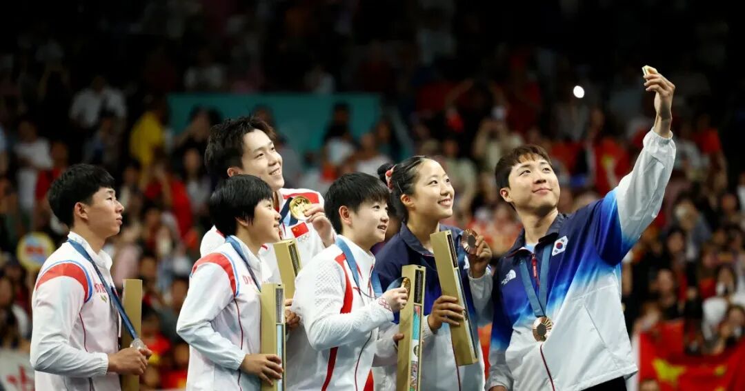 在转播体系更严密的奥运会舞台,三星作为三十年赞助商,将手机分布于开幕式及比赛现场,分发给运动员拍摄官方转播未覆盖的细节,通过“官方+运动员”传播补充内容分发。巴黎奥运会运动员入场的船上视角、“中朝韩乒乓混双自拍”等名场面均来自三星手机,在社交媒体时代实现“四两拨千斤”的传播效果。