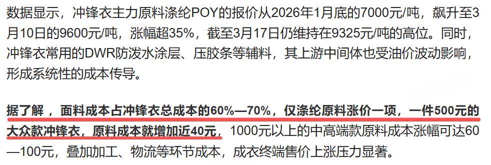 油价上涨,“打工人刚需”冲锋衣要涨价?背后关联竟如此紧密