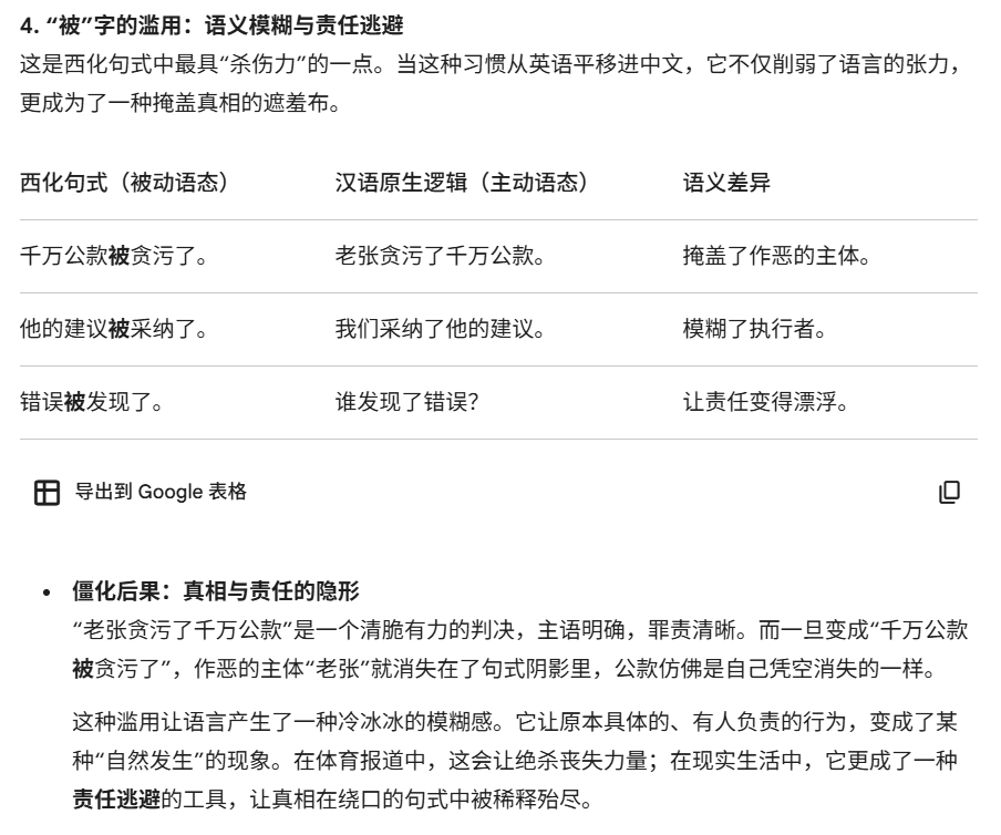 词汇的语义平移还只是逻辑借位,更深层的变化在于句式西化。这种僵化比词汇替换更难察觉,却在更隐蔽地消解中文原本的生命力。