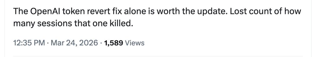 而在OpenAI方面,OpenAI Token回退到过期值的Bug也得到了修复。