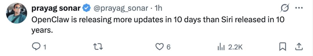 龙虾10天更新的功能,比Siri 10年更新的还多!