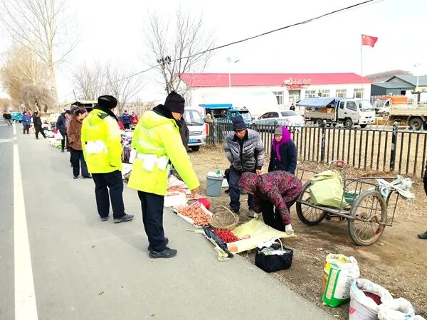 为规范集贸市场周边交通秩序、消除安全隐患、保障群众赶集出行安全,梅河新区公安局交通管理支队乡镇执法大队近期结合辖区集市人流车流密集的特点,组织警力开展交通安全执勤执法与宣传引导专项行动,以“荧光绿”守护集市里的平安路。