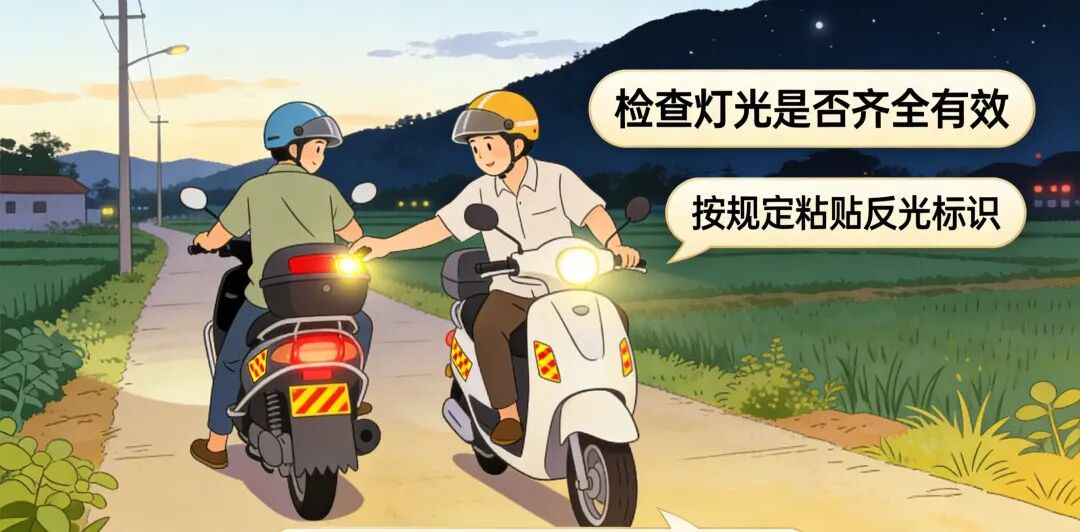 早出晚归视线本来就不好,如果车辆灯光昏暗或者没有粘贴反光标识,很容易因为其他驾驶人“看不见”而引发碰撞事故。出车前一定要检查灯光是否正常,按照规定在车身尾部及侧面粘贴反光贴,让车辆在晨昏和夜间“亮起来”,有效降低行车风险。