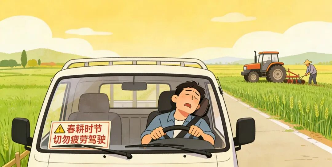 春季是农耕繁忙的季节,也是容易出现“春困”的季节,人们会感到困倦、疲乏、嗜睡。农活多、任务重,不少农民朋友为了节约时间,在田间争分夺秒地作业,容易犯困疲劳,导致驾车时判断力下降、反应迟钝,操作失误也会增多。所以,驾驶人要及时休息调整,保证充足的睡眠,千万不要疲劳驾车。