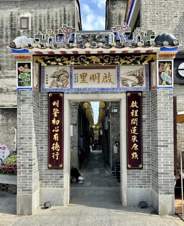 启明里的建筑独具特色,完美融合传统岭南建筑风格与西方建筑元素,青砖黛瓦、西式拱券、精致雕花相互映衬,每一栋老屋都是侨乡文化的鲜活载体!