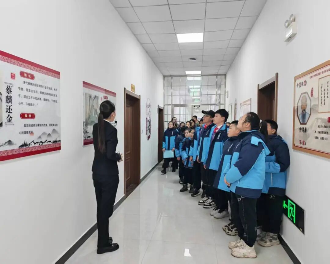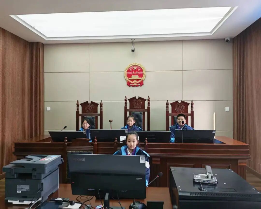 步入法治文化长廊,讲解员生动讲述了历代法治人物的故事,帮助同学们对法治精神有了更深刻的认知。在审判法庭内,同学们兴奋地走上审判台,拿起法槌,亲身体验了“小法官”的角色,近距离感受司法审判的庄重。