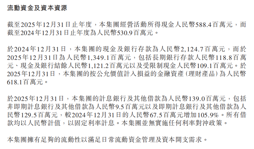 2025年锅圈经营现金流5.88亿元,较2024年5.31亿元增10.8%,但净利润增速近9成。同期计息银行及其他借款1.39亿元,较2024年翻一倍多。