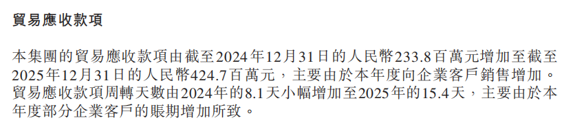 同时,应收账款周转天数从2024年8.1天升至15.4天,几乎翻倍。