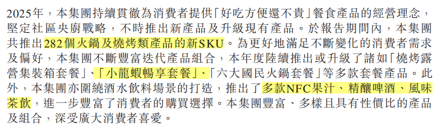 2024年起,锅圈从食材零售转向“社区中央厨房”,想全包“在家吃饭”需求。于是大举扩品类,推出小龙虾、果汁、精酿啤酒、茶饮等,2025年新增282个SKU。