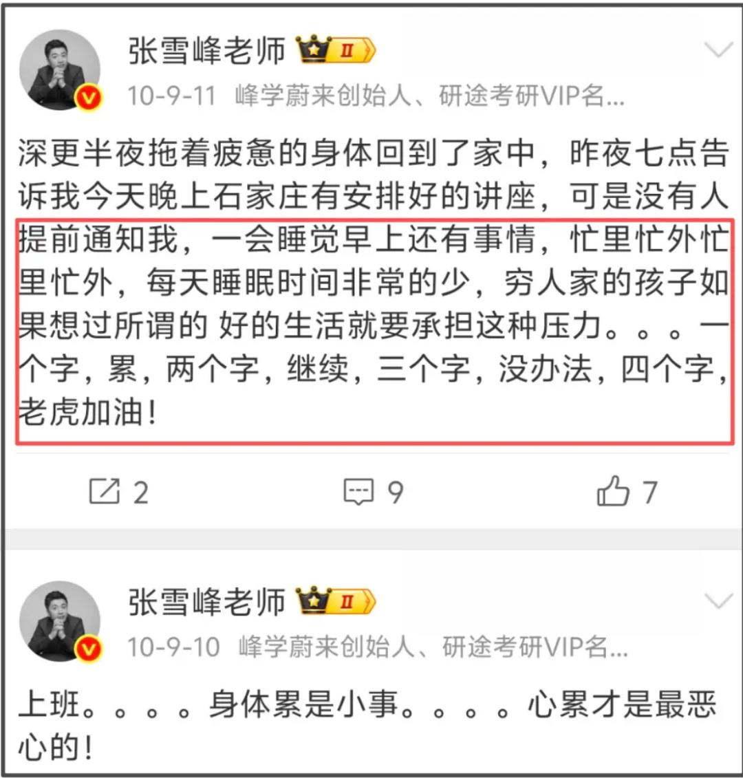 张雪峰多次发微博喊累的截图 图源 | 微博