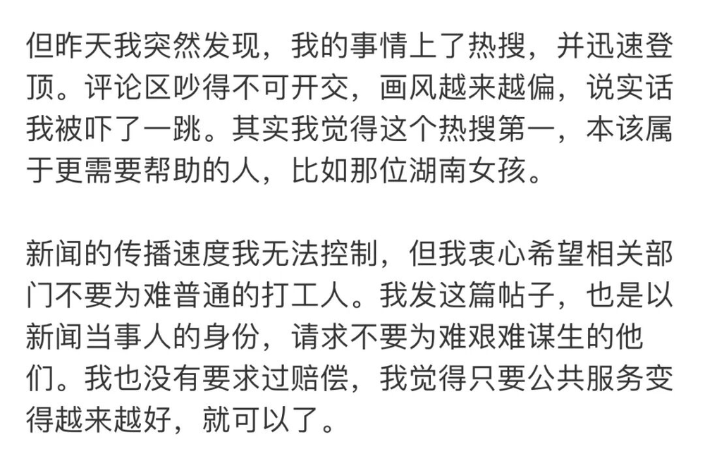 若人文关怀是公共服务提供者与体验者的共同追求,就该认识到:真正的关怀不在赔偿或处罚的结论,而在过程中,人的窘迫是否被看见、尊严能否被维护、需求是否被前置思考。