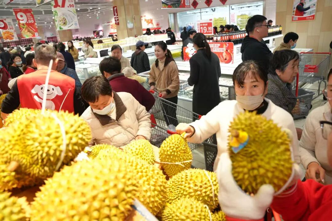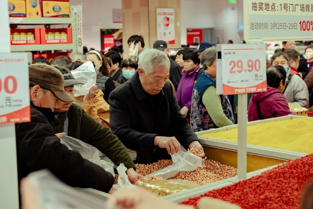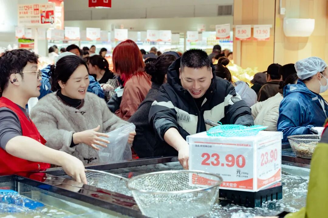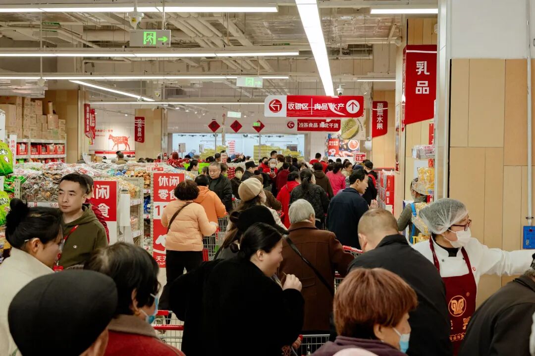 宿州CBD万达广场位于老城区核心,周边社区密集、消费需求旺盛。宿州店延续“大店型、多SKU”模式,近5000平米卖场涵盖日用百货、生鲜食品等多品类,满足家庭一站式采购需求。开业当日人气爆棚,收银台排起长龙,此前直采肉品节已积攒高人气。
