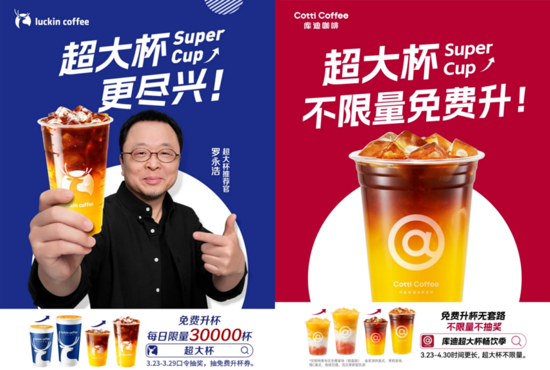 虽同时推出超大杯活动,但瑞幸和库迪打法差异明显: