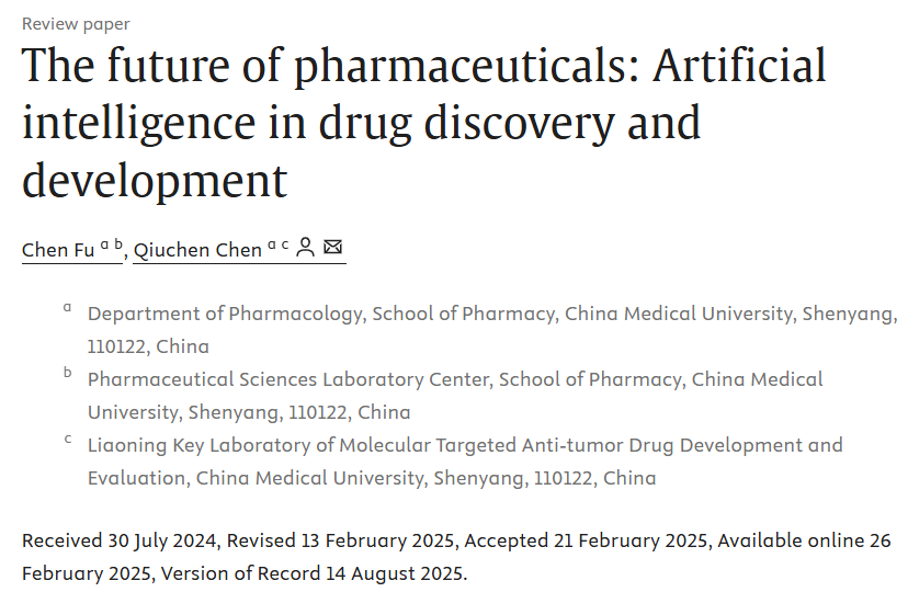 题为《制药行业的未来:人工智能在药物发现和研发中的应用》的综述论文截图。
