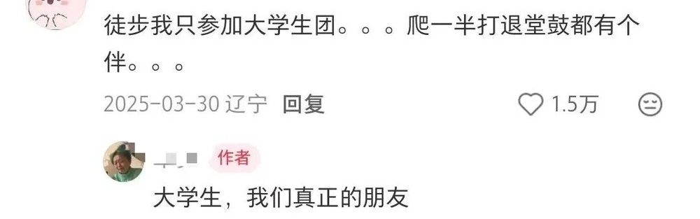这不是个别现象,户外前浪能把后浪拍在山路上。更服气的是,他们不仅体力好,还会玩、懂生活、有温度,拍照热情高,互帮互助,全程情绪价值拉满!