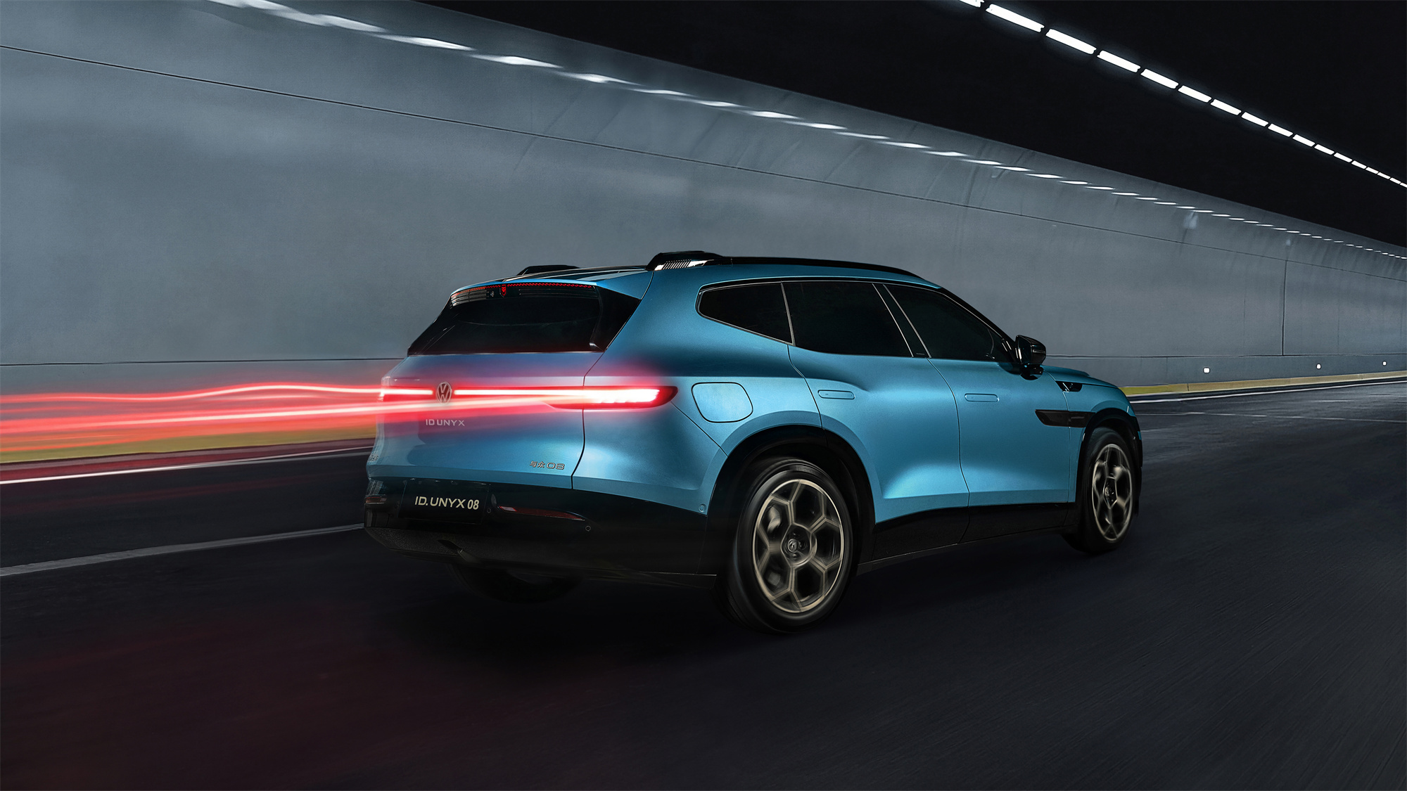 与众08的车身尺寸为长5000mm、宽1954mm、高1688mm,轴距达3030mm。车尾在量产车型中首次融入了发光的沃尔夫斯堡狼头标志,该标志位于高位刹车灯位置。