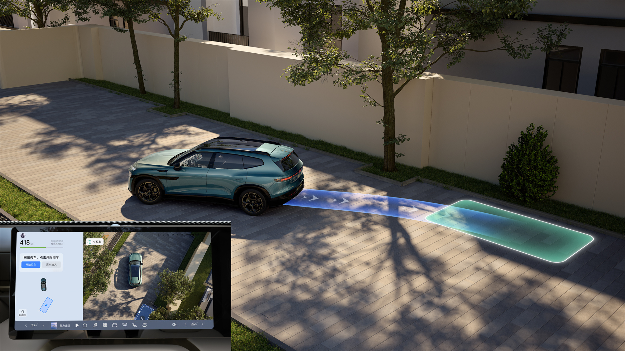 泊车功能是与众08的一大亮点,车辆支持“指尖泊车”,用户在中控屏上划过期望的区域,系统就会自动生成车位并完成泊入操作;循迹倒车功能能够让车辆自动按照原路径倒回最多100米。