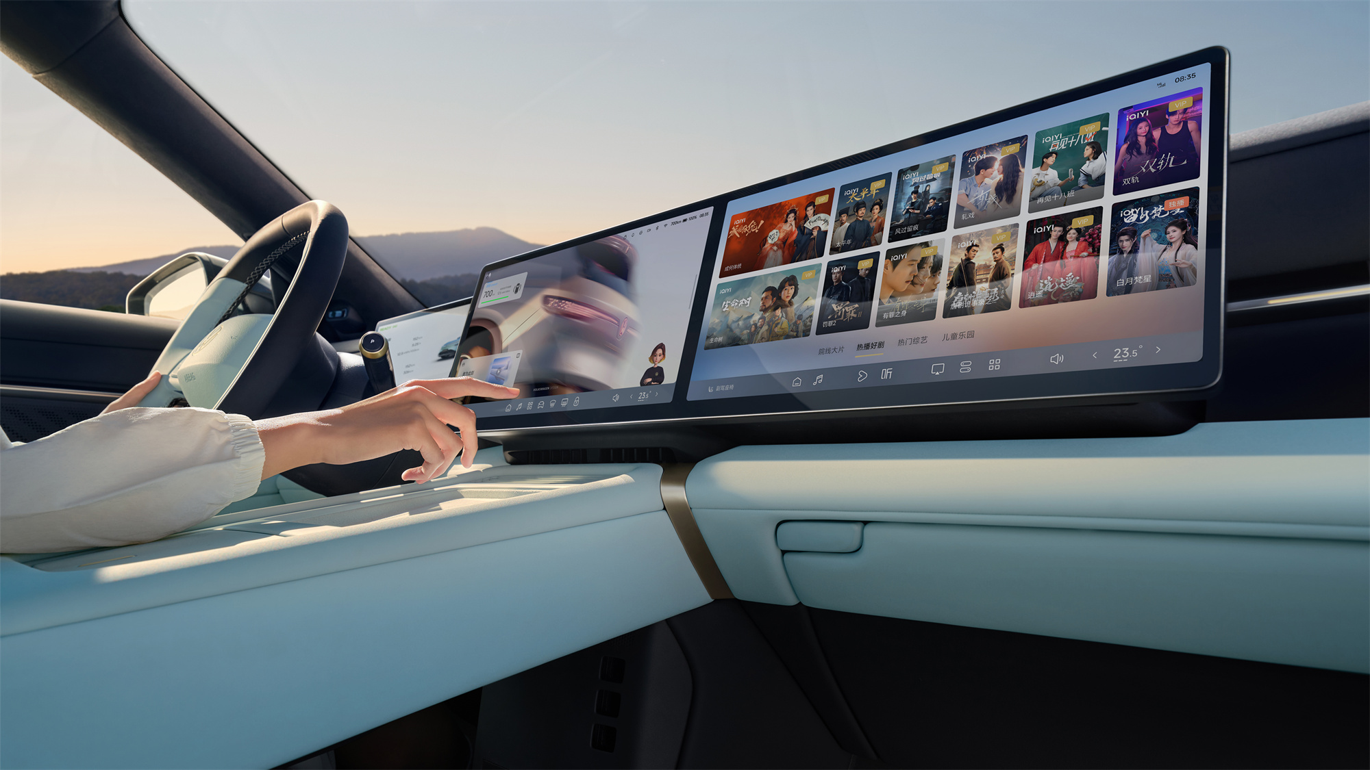 智能座舱方面,与众08配备了双15英寸2.4K超高清智能双联屏,支持350多种自定义场景模式。AI智能伙伴接入了智谱AI基座大模型和文心模型的双重AI能力,可实现语音控制。