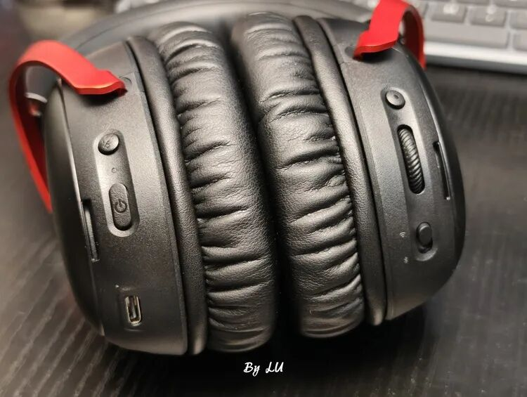 飓风3加强版的按键布局值得一聊。左耳罩后侧从上到下依次是:无线模式切换键、多功能按键、音量滚轮、麦克风静音键。