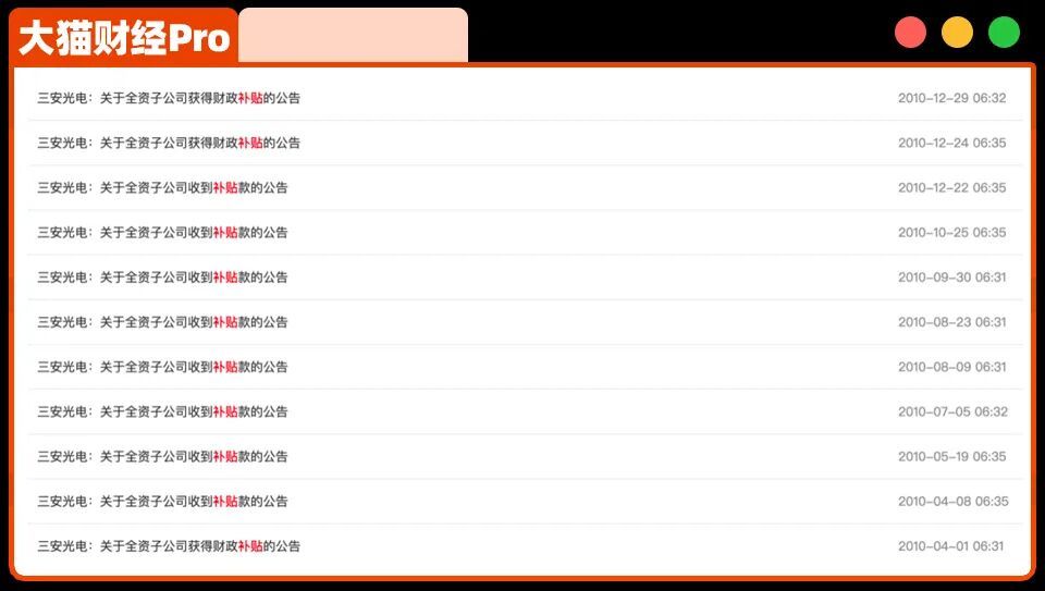 林秀成被查的时间点颇为微妙——3月20日某重要人物被查,次日他便被留置。尽管公告未说明原因,但坊间猜测或与补贴相关。三安光电素有A股“补贴之王”之称,上市以来累计获得超110亿元政府补贴,部分年份补贴金额甚至远超净利润。例如2011年补贴达18亿元,是当年净利润的两倍;2024年净利润仅2.5亿元,补贴却高达8亿多元。