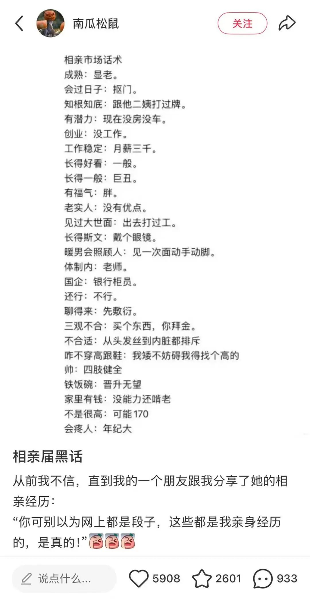 小红书上关于“相亲黑话”的讨论。