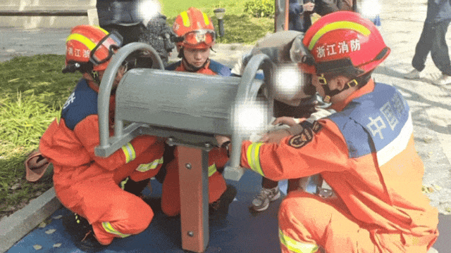 2026年3月,浙江杭州一名男孩头部卡在健身器材中,无法自行挣脱。消防员赶到后,先用衣物保护男孩头部和颈部,再用专业工具扩张器材缝隙,经过约10分钟救援,男孩顺利脱困,身体未受损伤。