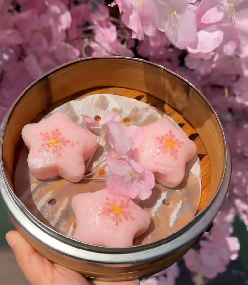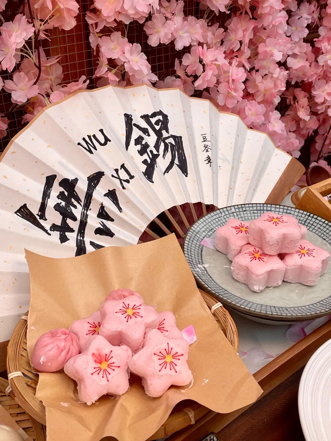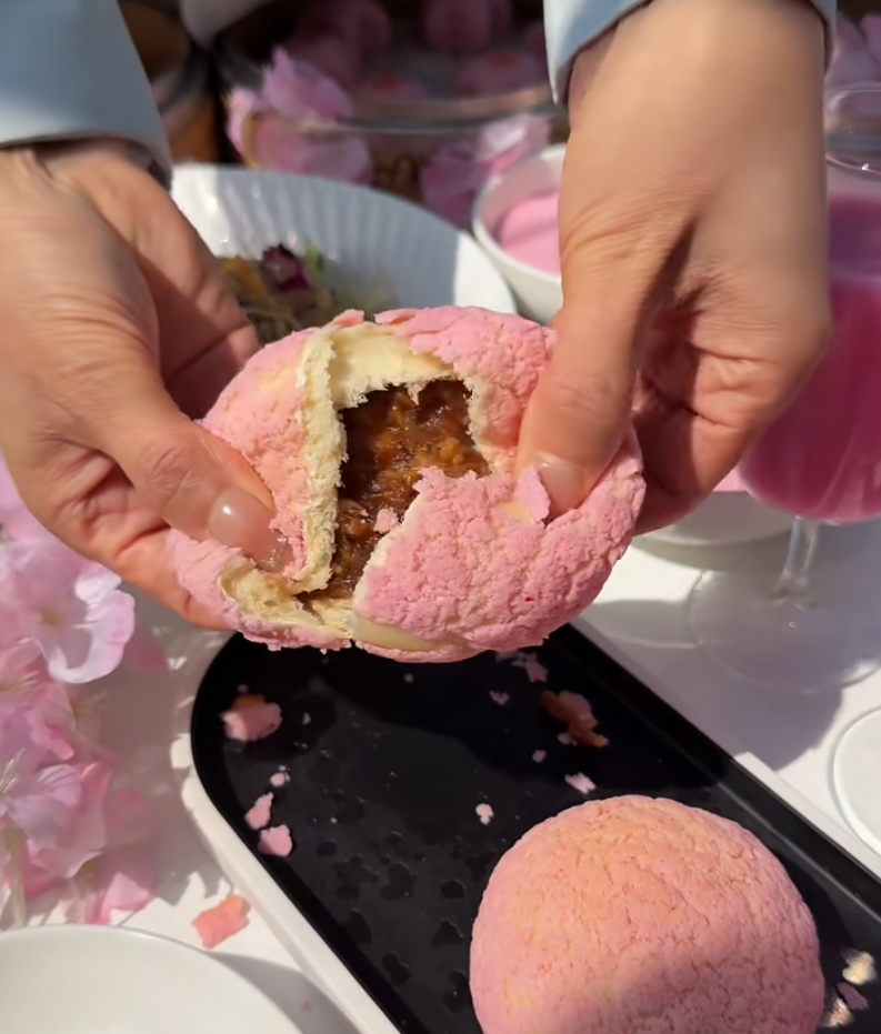 樱花手工米糕、樱色脆皮叉烧包