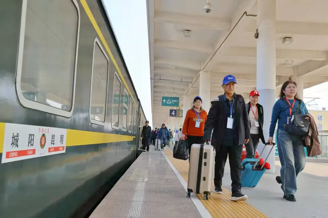 近日,732名旅客乘坐Y94/91次“齐鲁之星”银发旅游列车,从山东青岛城阳站出发,踏上了为期14天的春日旅程。