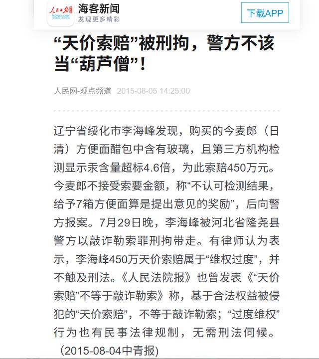 李海峰案件背后是“维权过度”与“敲诈勒索”的模糊边界——我国法律对索赔合理限度界定不清,远超法定标准的索赔易被企业反诉。