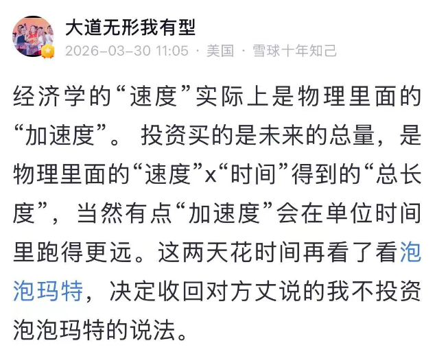 问题的核心在于业绩指引。会上,王宁给出2026年“不低于20%”的增速预期,这一数字让资本市场颇感意外。持股机构纷纷减持,而此前表示“看不懂泡泡玛特”的段永平却突然转变态度,称不能只看“加速度”,更要关注“总长度”,并撤回了不投资的说法。