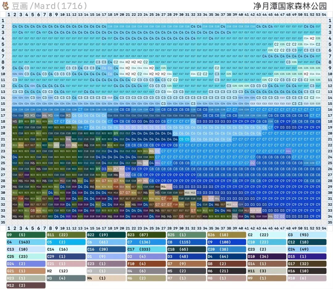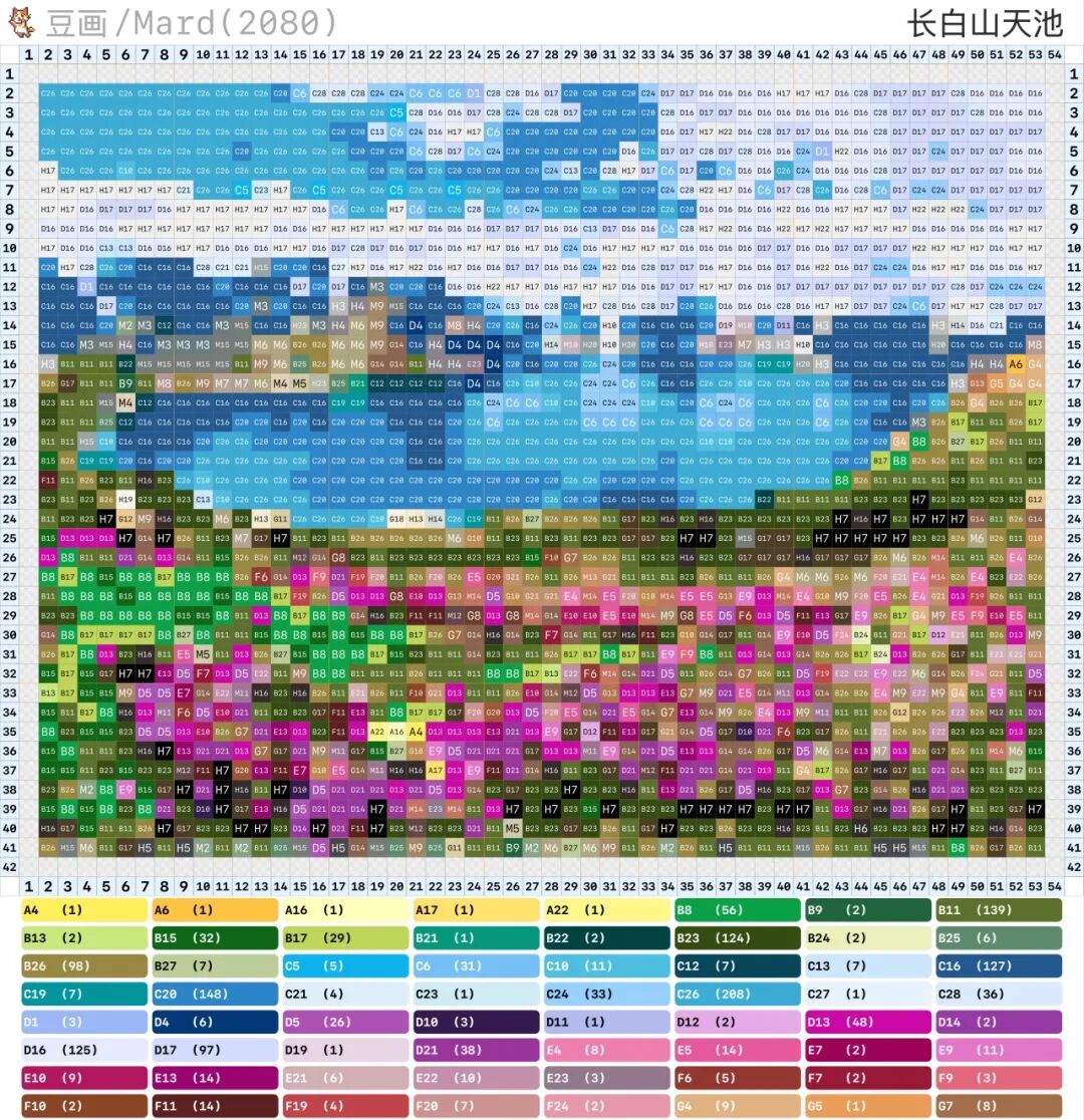天池水澄澈如镜,随天气变幻出不同色泽,拼豆把澄澈如镜的湖水和环绕的群峰拼在一起,随季节变换色彩,每一幅都美得很纯粹。