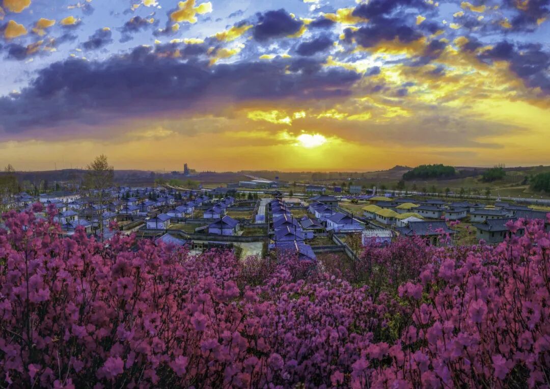 和龙金达莱村的朝鲜族风情民居与花海共同筑成一幅绝美景观!拼豆将粉艳的金达莱与朝鲜族民居拼接,一步一景,藏着延边的浪漫与民俗韵味。