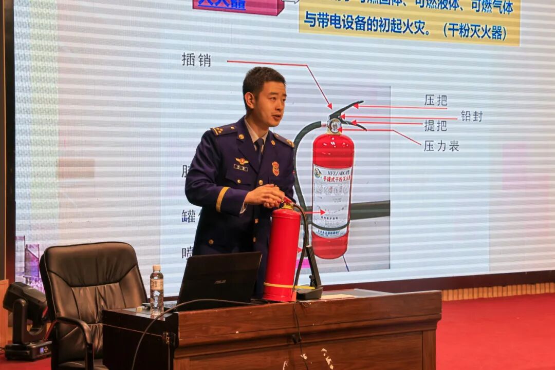 培训中,消防宣传人员结合校园火灾防控实际,针对宿舍、教室、实验室等重点区域的安全隐患,用通俗易懂的语言讲解火灾预防要点、规范报警步骤、初期火情处置及火场逃生技巧等核心内容。培训摒弃传统说教模式,通过实景演示、互动问答和实操演练等方式,让学生们沉浸式学习消防知识,切实掌握实用技能,将安全意识融入日常行为。
