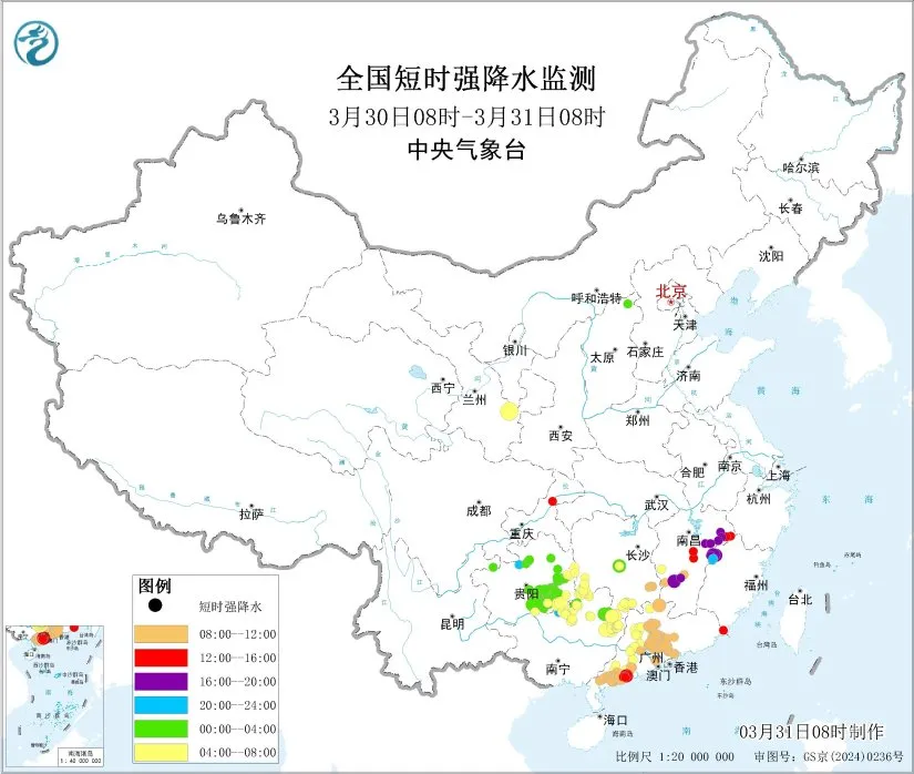 3月30日,贵州、广东等地出现了较强的降雨和强对流天气。