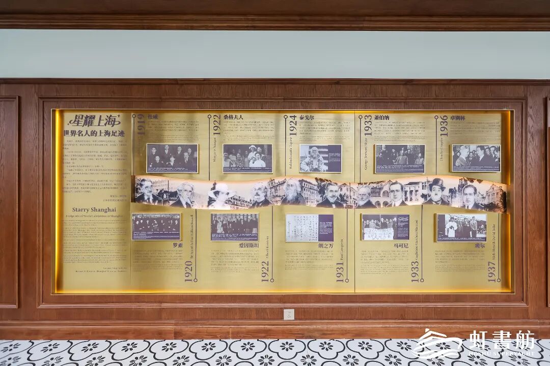 位于二楼的“星耀上海——世界名人的上海足迹”特展是一个特别的单元。该特展以1919至1937年间到访上海的杜威、爱因斯坦、泰戈尔等十位世界各领域巨匠为核心,通过珍贵史料展陈、第一人称故事演绎、沉浸式场景还原等多种形式,挖掘并呈现东西方文化交融的珍贵历史记忆。刘军提到:“其中很有趣的一点是,爱因斯坦正是在上海得知自己获得诺贝尔奖的消息。这些中西文化界名人的交流与碰撞,都是上海城市精神的重要组成部分。”