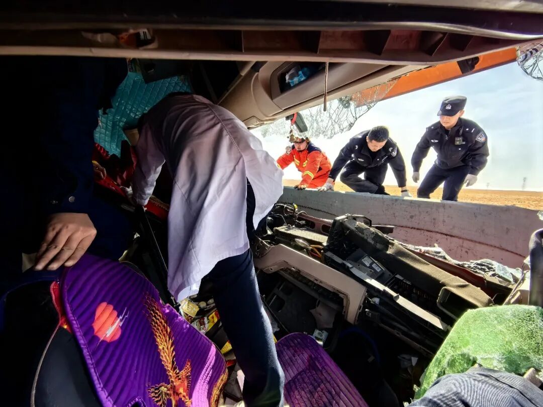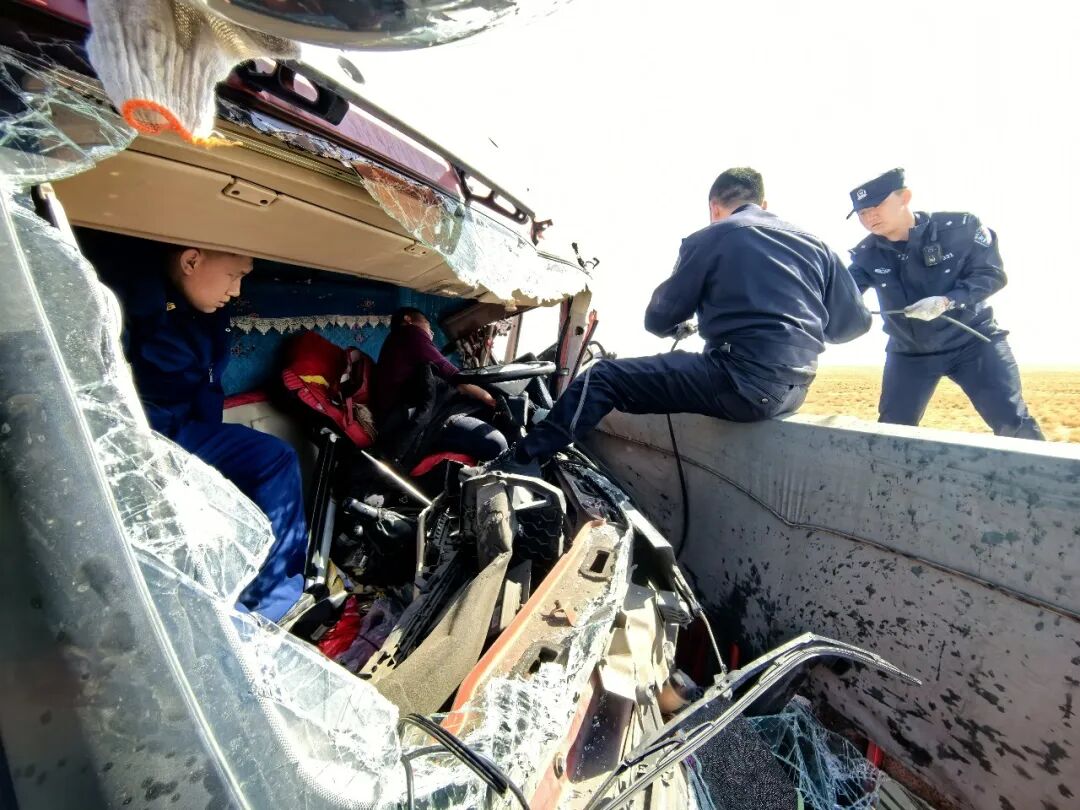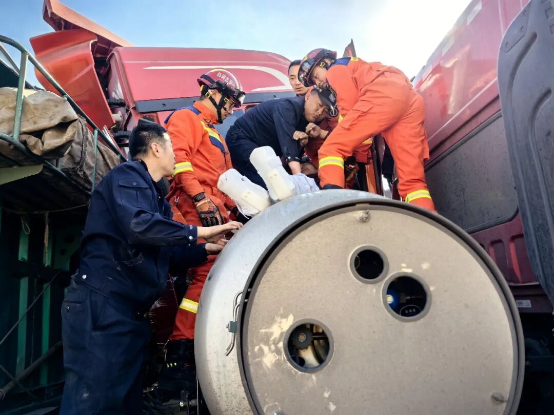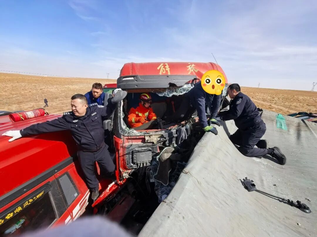面对破碎的挡风玻璃和扭曲变形的驾驶室,民警们小心翼翼地展开救援,避免对被困人员造成二次伤害