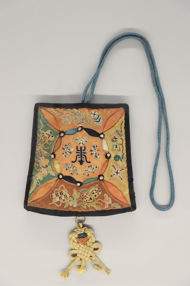 百衲拼绣钉珠“五福捧寿”双面方荷包,时代:清晚期,地域、流派:北京