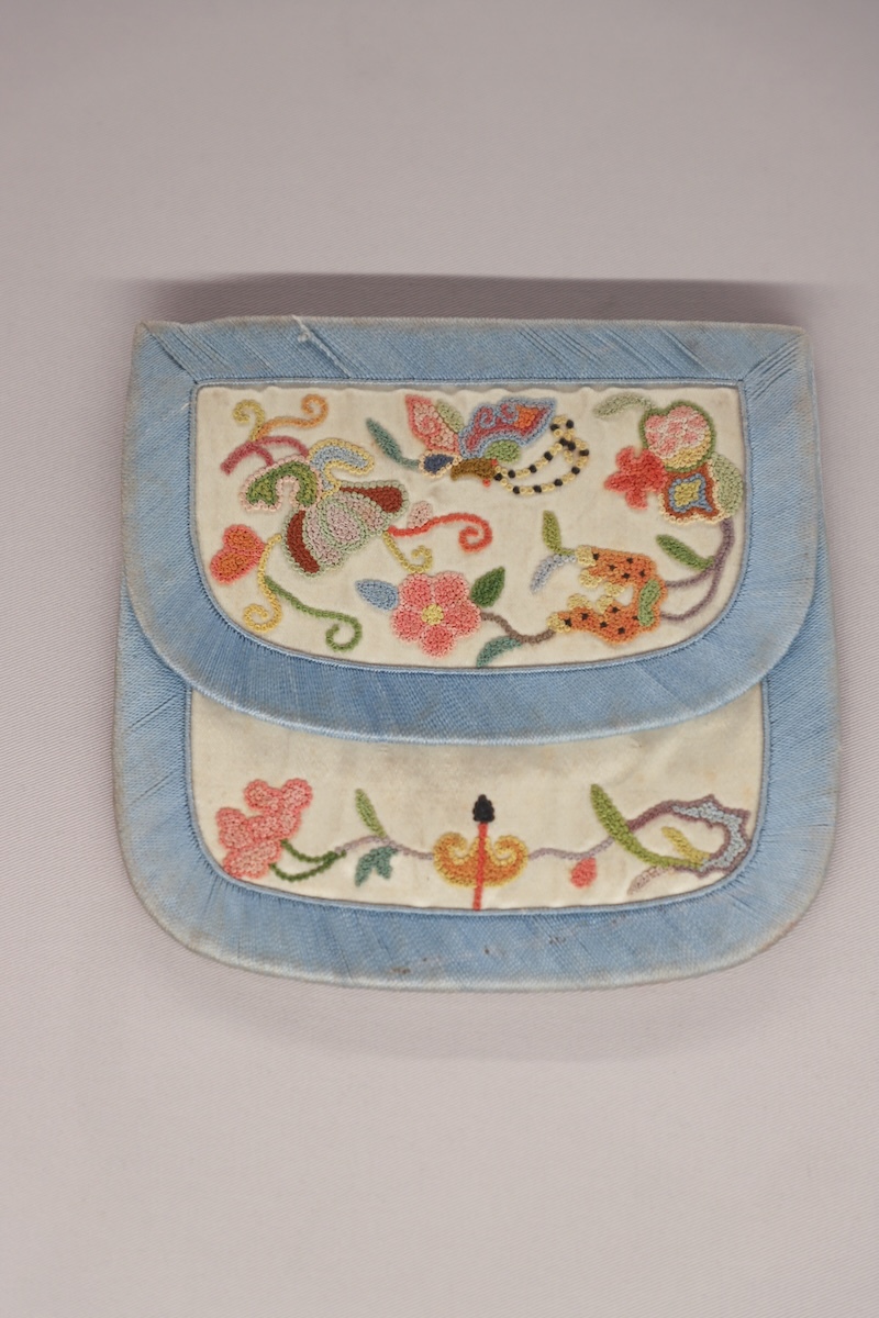 浅蓝缎地平绣“暗八仙”纹双面荷包,时代:清晚期至民国,地域、流派:山西