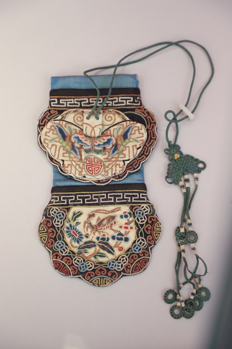 据澎湃新闻了解,吴文化博物馆此次展览共呈现140余件历代荷包珍品,通过“佩帏风华”“纹以载道”“指尖天工”“四方风土”四个单元,分别从荷包的功能形制、纹样寓意、刺绣技法及南北地域特色四个维度,讲述这一传统物件背后的故事。