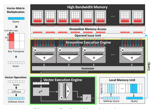 这是LPU的计算核心,内置了大量定制的MAC树(乘加运算单元),专门用于处理向量乘矩阵的运算,而这正是大模型推理中最耗时的操作。LPU将这些MAC树排列得十分规整,数据流进来后能一路计算到底,中间不停顿,就像一条高效的生产线。
