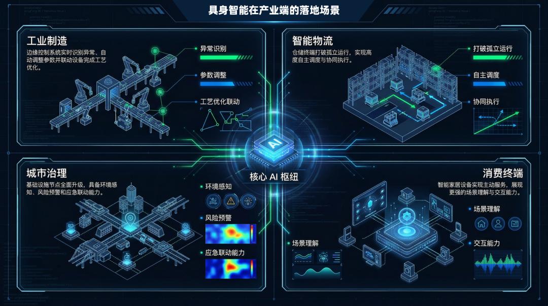 具体场景充满想象:工业场景的边缘控制系统,物流场景的仓储终端,城市治理的基础设施节点,消费领域的智能家居等。这是具身智能在产业端的官方表达,物联网终端从“感知物理世界”向“操作物理世界”进化。