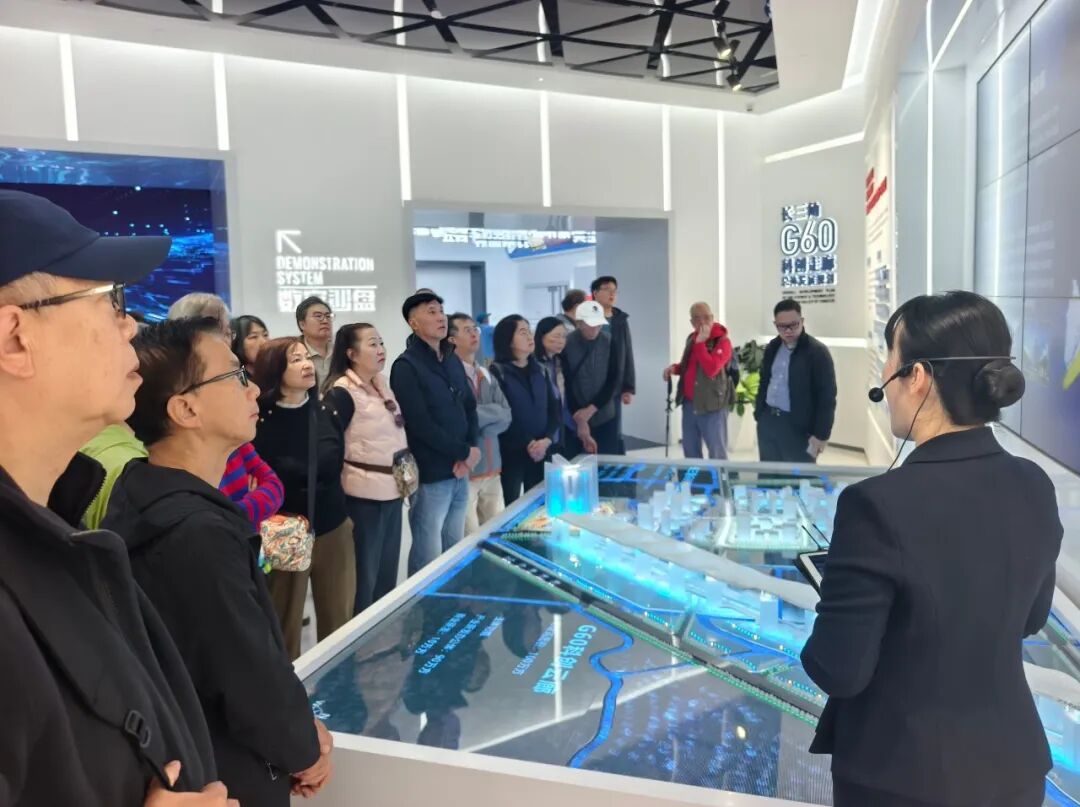 旅行团首先满怀兴致地参观了飞科电器与日播时尚体验中心,随后走进G60科创走廊规划展示馆,深入了解松江作为长三角G60科创走廊策源地近年来的发展变迁。团员们有的仔细了解半导体、生物医药、新能源等技术的应用,有的亲身体验AI模拟驾驶、智能代步机器人等科技产品,沉浸式感受松江科技创新的蓬勃生态。