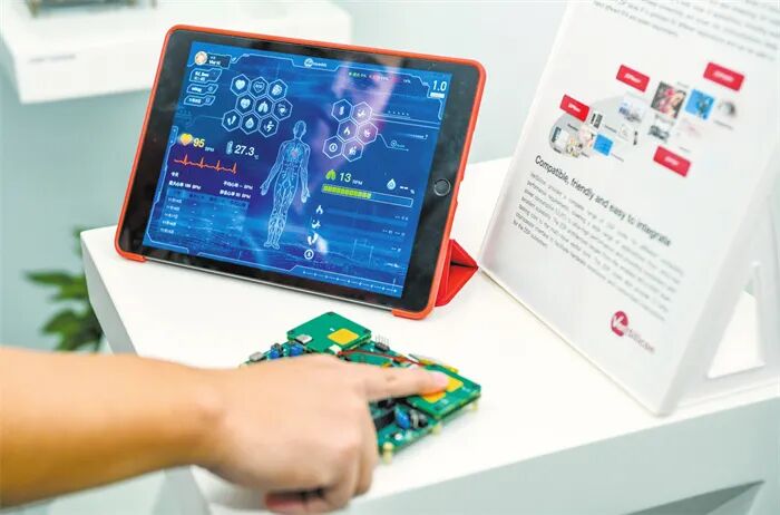 芯原微电子自主研发的新健康平台Verihealth,其传感器检测的数据可以在芯片内进行计算,并把结果通过蓝牙传输到平板电脑上。记者 康登淋 摄