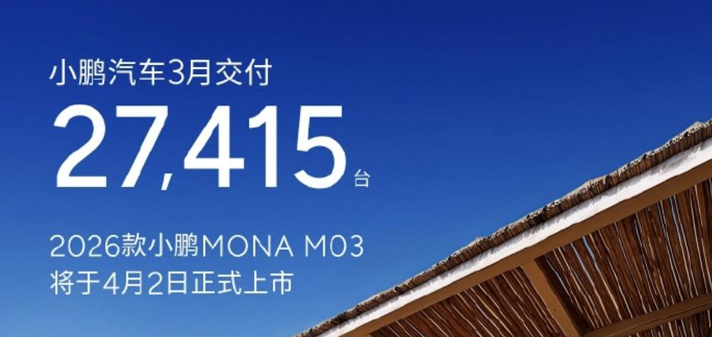 小鹏汽车3月交付2.74万辆,同比下滑17%、环比增长80%,或与一车双能车型需求提升有关。3月19日小鹏推送第二代VLA系统,带动门店试驾量环比翻倍,搭载该系统的Ultra及Ultra SE高端车型销量占比提升超一倍;4月2日,销量担当MONA M03改款上市,有望进一步拉动销量。