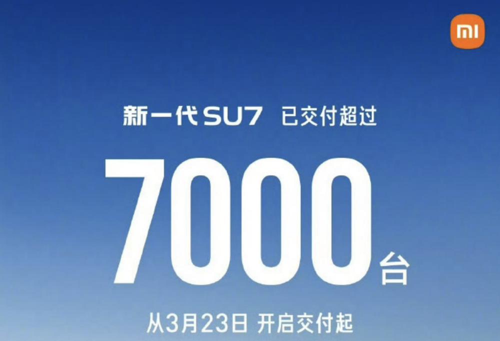 小米汽车3月交付量超2万台,与2月基本持平;新一代SU7交付首周便突破7000台。