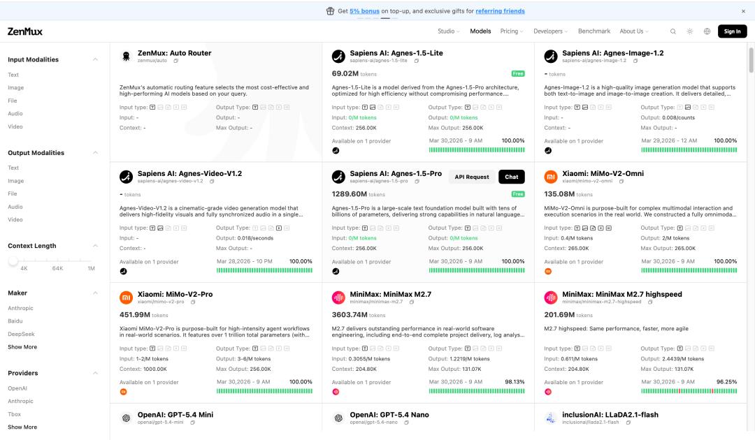 Agnes模型矩阵在Zenmux正式上线