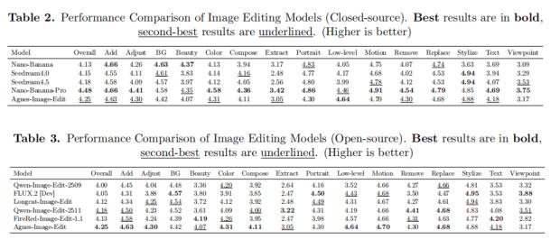 在单项指标上,Agnes-Image-1.2模型在人像维度提升尤为显著,针对人像场景的定向微调有效增强了面部细节保真、局部编辑可控性以及与背景的自然融合能力,Portrait从3.98提升至4.30(+0.32)。