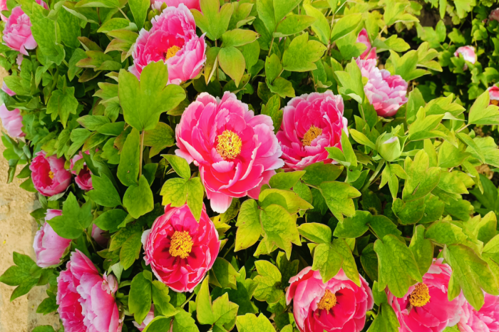 隋唐城遗址植物园:全园约240个牡丹品种开放,主要集中在九色园、百花园等地。盛开品种包括狮子头、梨花粉、明月花、团结红、凤丹等;初开品种有春水绿波、二乔、荷花绿、争春、银红巧对等。园内雪球海棠、绚丽海棠、钻石海棠、草莓果冻海棠、菊花桃、寿星桃、绣球荚蒾、荷包牡丹等也同步绽放,花景丰富。