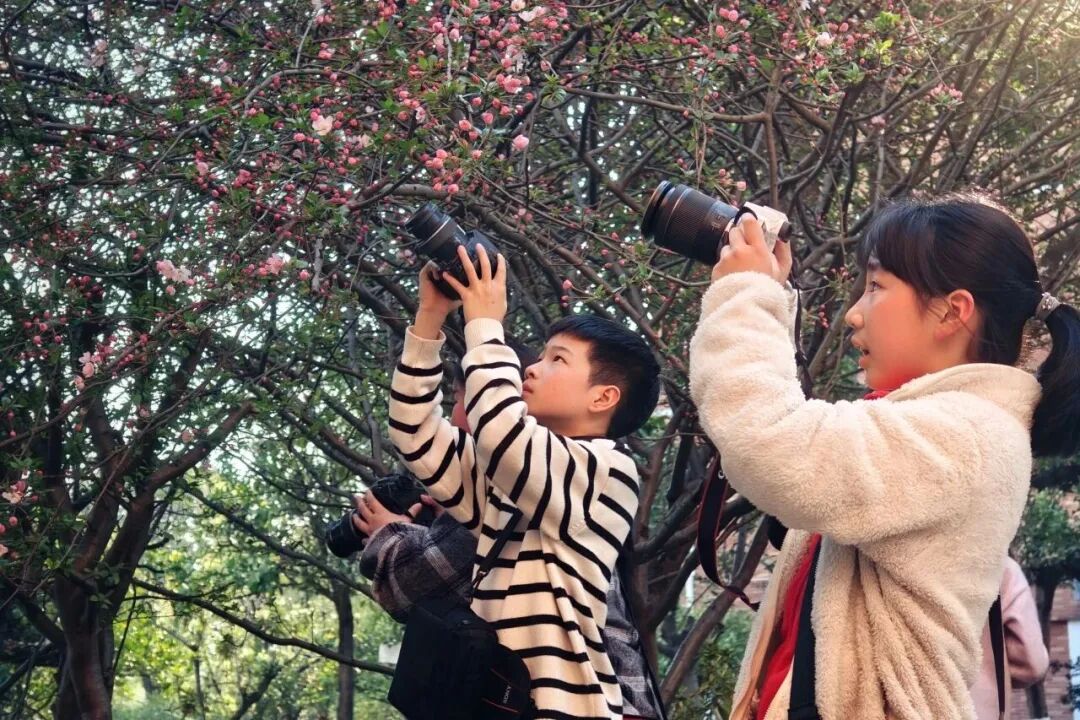 廿三里二小的摄影课上,孩子们举起相机,将繁花与绿意定格在镜头里,捕捉校园的生机与美好。